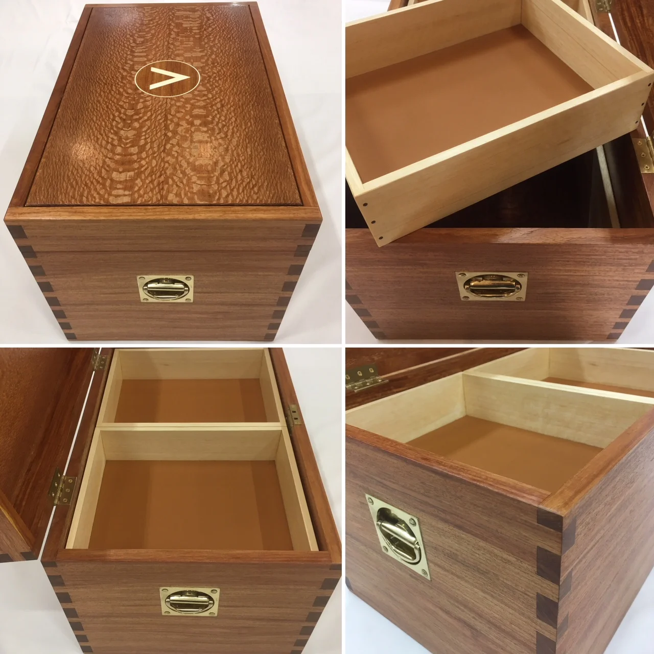 There were a number of firsts in this chest made by furniture making student Nick including experiments with CNC and resin along with cutting the dovetails by hand. A stunning array of timbers all sourced locally from Anagote Timbers were used including; Silky Oak, NG Rosewood and Silver Ash. Orange leather supplied by John at Hide Leather. This is a truly wonderful piece that displays a variety of skills and determination to get the details just right.